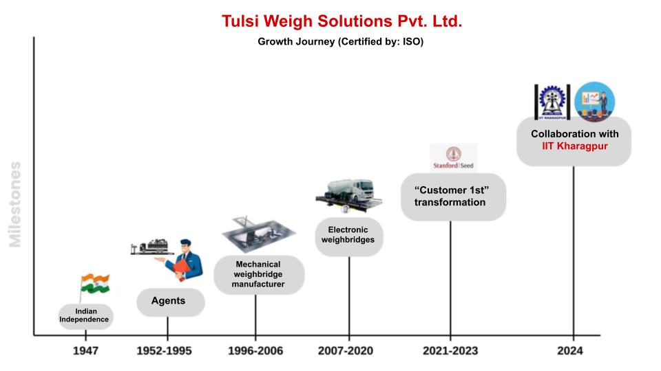 Tulsi Weigh Solutions Pvt. Ltd. was founded in 1952 by the visionary Late Shri Tulsi Ram Tikmany. Originally started as Tulsi Trading Company, a trusted dealer of weighbridges, it soon evolved into a weighbridge manufacturing company with government approval, and was renamed Tulsi Weigh Solutions Pvt. Ltd.