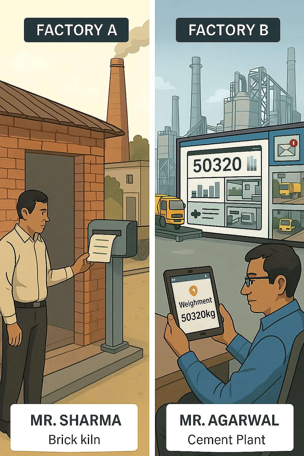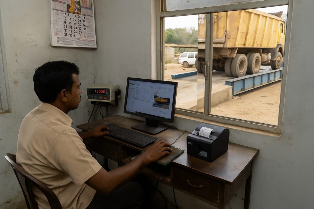 Every weighment is tracked live, every vehicle is verified through CCTV, and alerts arrive instantly on his phone.